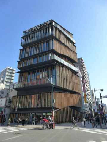 自然との調和を目指す隈研吾は建物の高さをなるべく低くすることが多いのですが、こちらの「浅草文化観光センター」は珍しく縦に長い構造になっています。訪日観光客も多い浅草雷門前にある台東区の観光案内所で、4か国語での案内対応や無料Wi-Fi、AC電源も備えた旅行者に便利な施設なので、浅草へ行く際にはぜひ中に入ってみてくださいね。8階は展望テラスなので、東京スカイツリーを眺めることもできますよ。