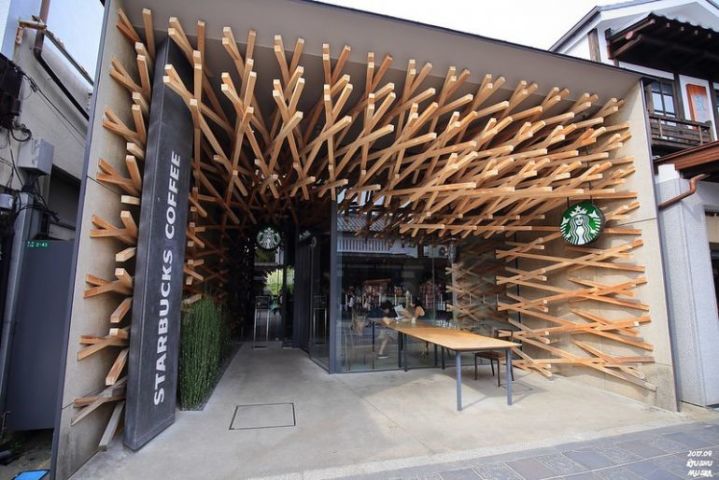 福岡県にある「太宰府天満宮」は学問の神様をまつっているとして全国的に有名な神社。毎年受験シーズンには、多くの参拝者でにぎわいます。その「太宰府天満宮」の表参道(神社や寺院へ向かう道のうち、主に正面に位置するもの)にある「スターバックスコーヒー」は、とてもおしゃれ!