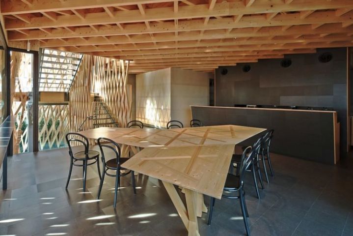 独創的でありながら周囲の景観に溶け込み、現代的でありながら伝統的な手法も駆使したデザインは、木材を多用しているからか温かみのある、居心地の良い空間となっています。