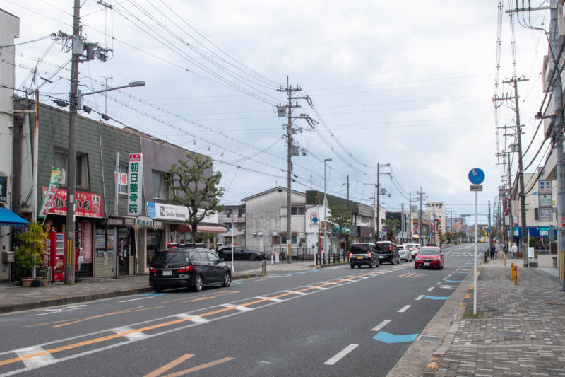 こっちに行くとやまやがあり、進んでいくとスーパーナカガワ、郵便局などの前を通って、古本市場がそばにある交差点「船橋」に。