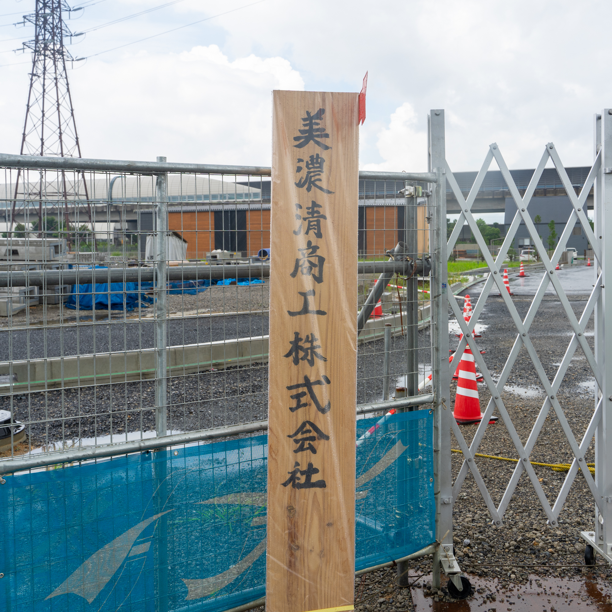 建築場所の前には「美濃清商工株式会社」と書かれた板が。