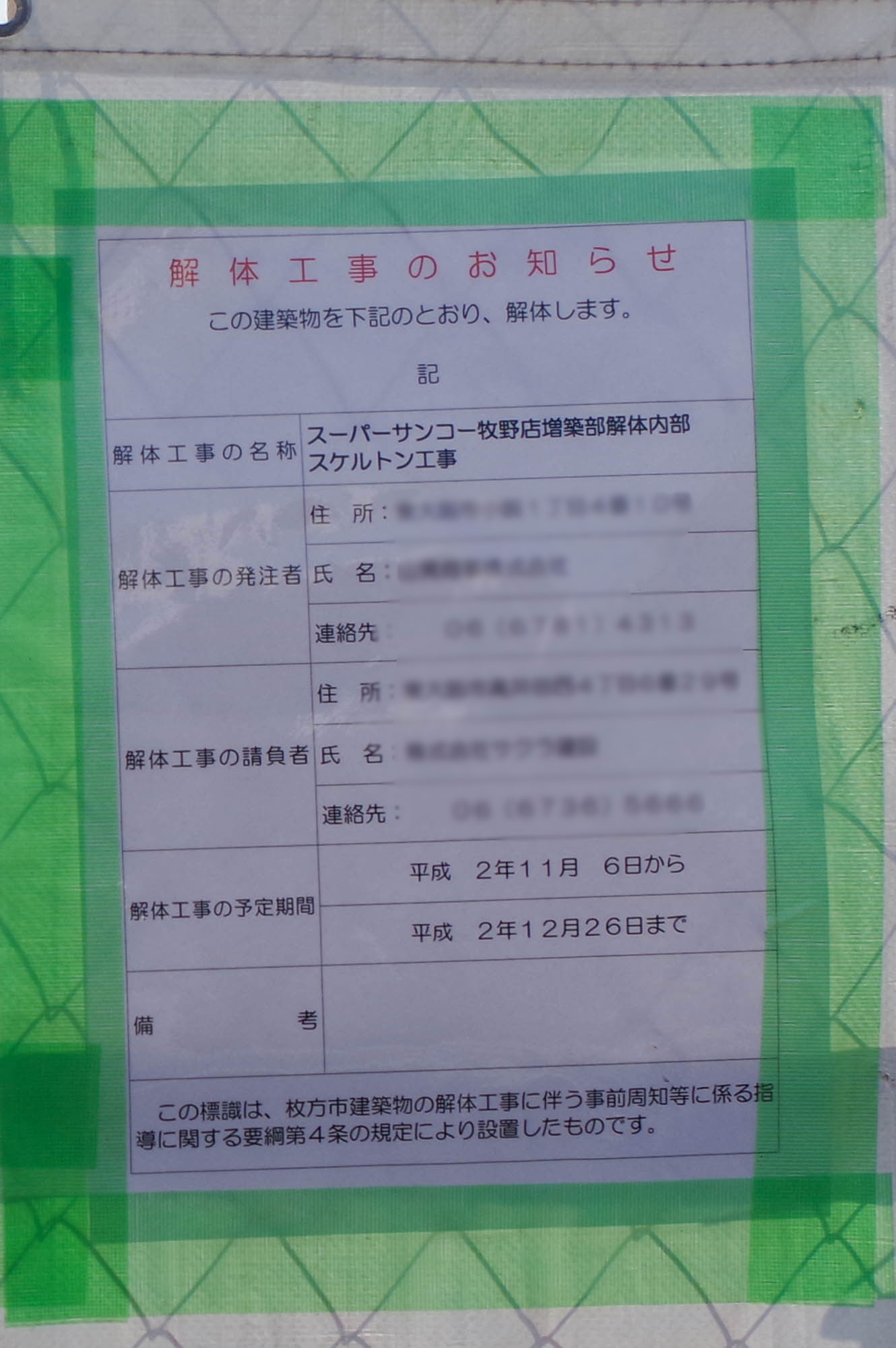0 Response to "牧野本町のスーパーサンコーの建物が解体されてる - 枚方つーしん"
