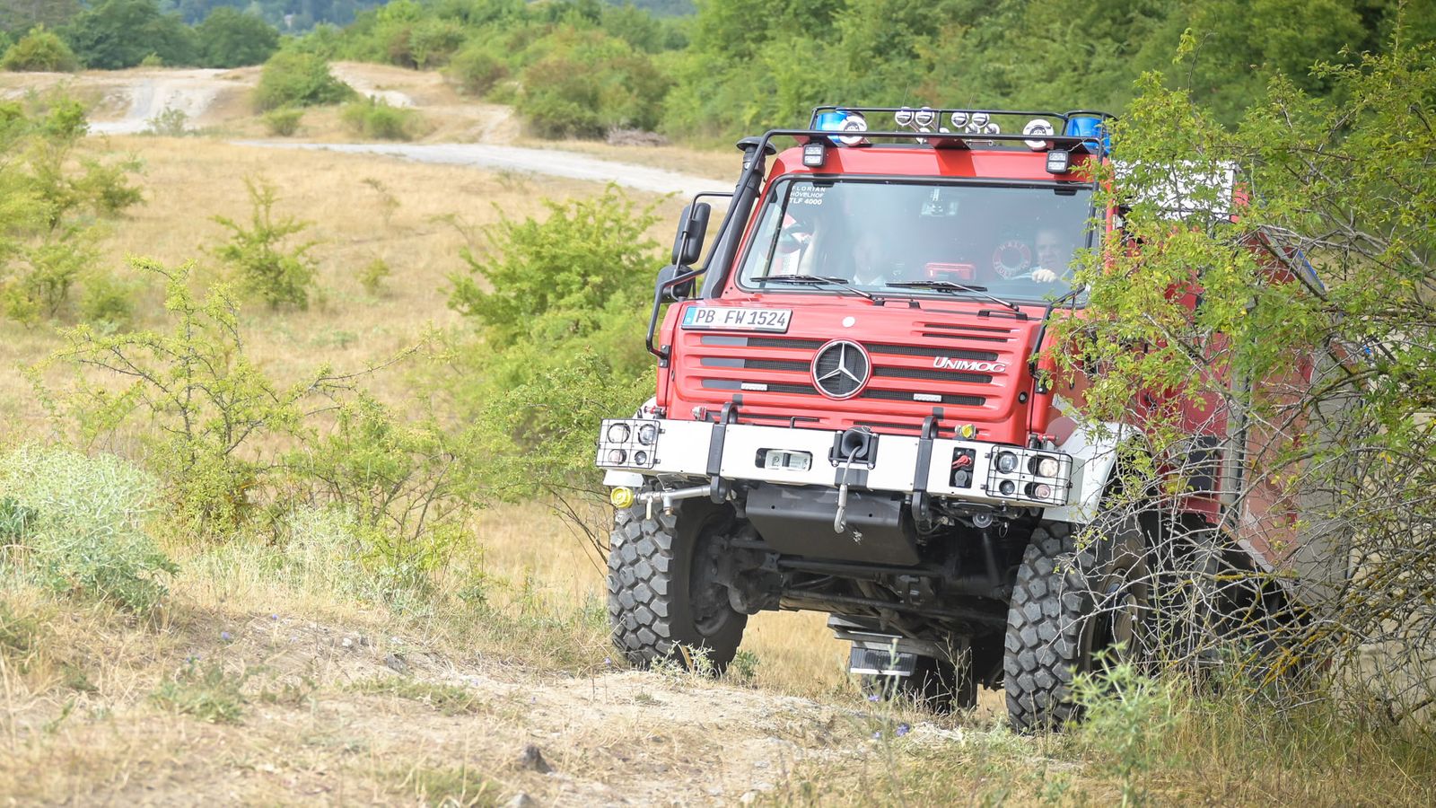 Die Feuerwehrteams können sich in den neuen Fahrzeugen durch Brände bewegen, erklärt Ott weiter. Und es gibt weiteres Spezial-Equipment: Das Fahrzeug kann sich selbst, die Kabine und die Reifen von außen mit Wasser besprühen. So kann sich die Besatzung im Fahrzeuginnern in Sicherheit bringen und hat sogar eigene Atemluft für etwa zehn Minuten. Maximal sechs Leute können mit dem Fahrzeug fliehen oder abwarten, bis die Gefahr vorüber ist. Auch diese Entwicklung stammt aus Südeuropa, wo es schon tote und schwer verletzte Feuerwehrleute bei Waldbränden zu beklagen gab.